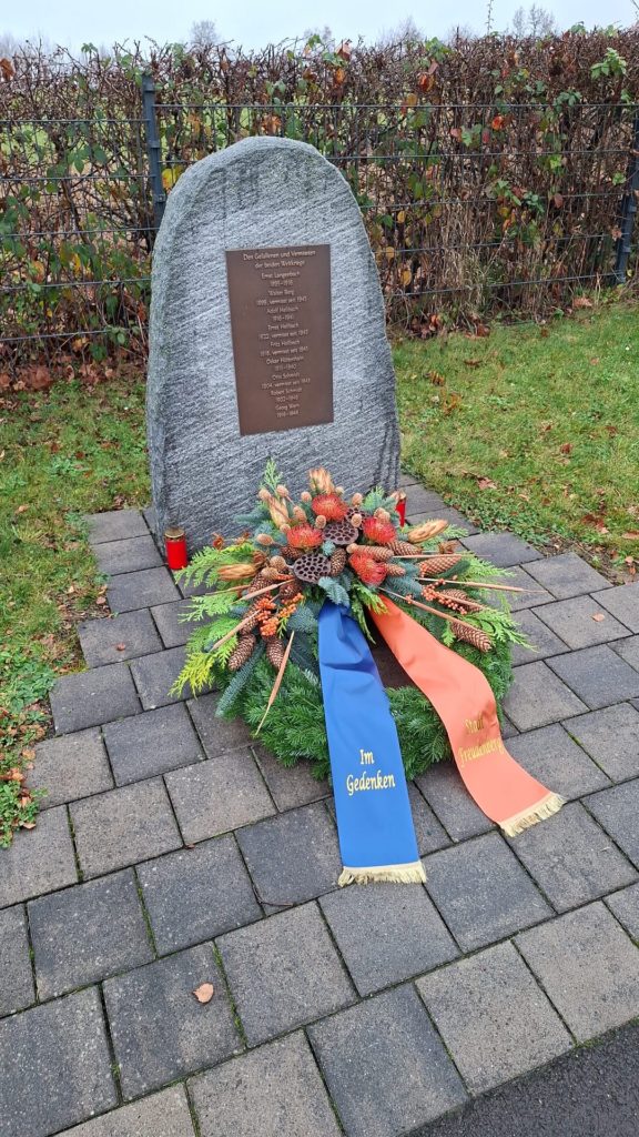 Anlässlich des Volkstrauertages 2025 trafen sich etliche Heisberger Bürgerinnen und Bürger am Gedenkstein auf dem Friedhof und gedachten der vielen Opfer von Terror und Gewalt, die in den beiden Weltkriegen und darüber hinaus ihr Leben verloren haben.